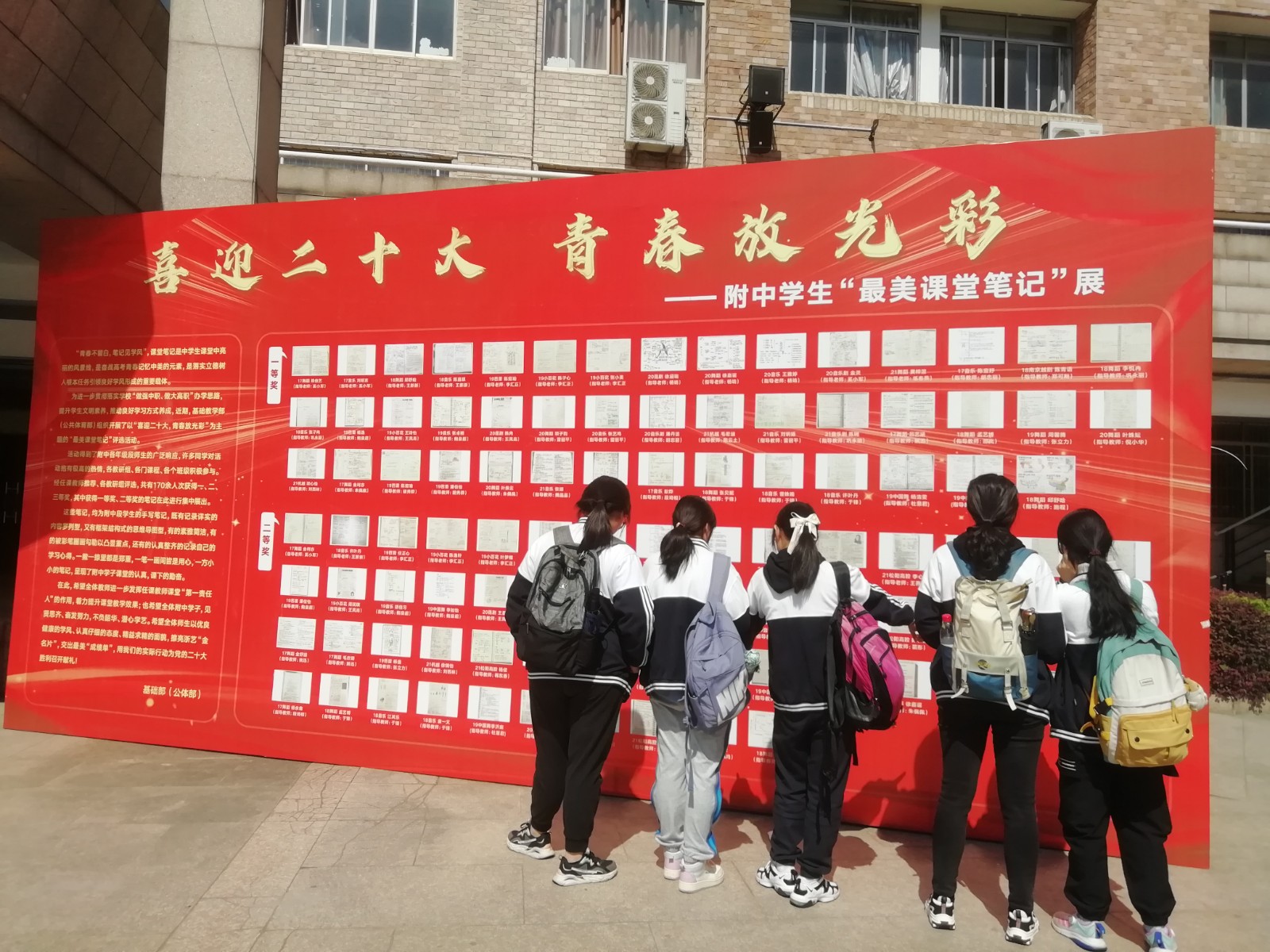 为进一步加强学风建设,营造良好的学习环境,提升学生文明素养,推动良好学习方式养成,近日,“喜迎二十大,青春放光彩”为主题的“最美课堂笔记”评选活动揭晓。经任课教师推荐、各教研组评选,共有170余人次获得一、二、三等奖,其中获得一等奖的笔记在校园内进行集中展出。此次活动中,附中各年级段师生的广泛响应,许多同学对活动抱有极高的热情,表现出了求真务实、勤勉学习的良好学风。