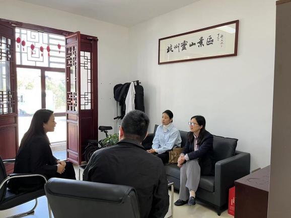 我院团队参观产业基地并介绍了学校建设、专业设置、办学特色等基本情况,希望我校与浙江艾德品牌策划有限公司 、杭州灵山风情小镇旅游投资有限公司开展校企合作的优势和合作方向,能与企业就项目研学及学生实习就业等方面开展合作。