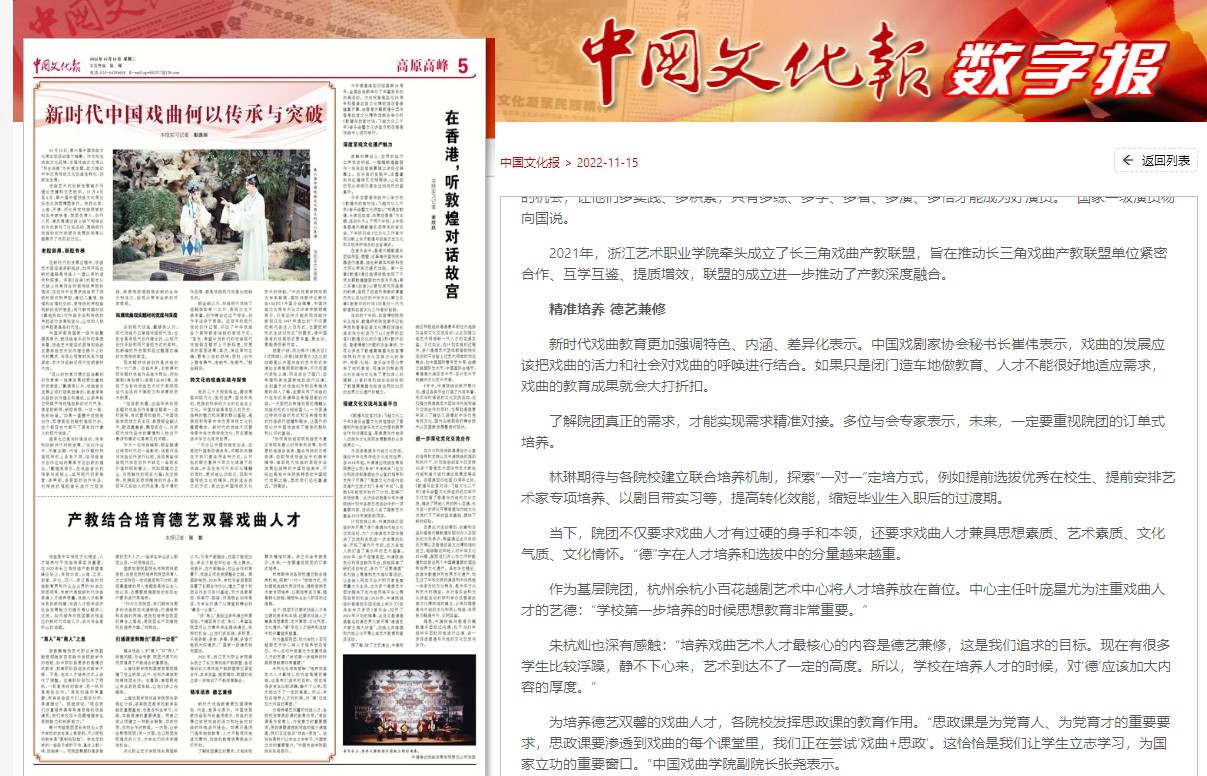 中国文化报:产教结合培育德艺双馨戏曲人才