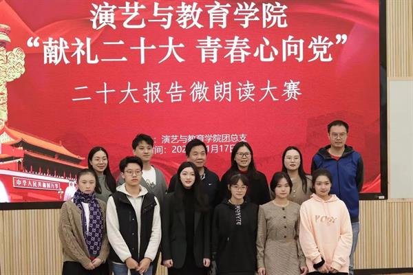 为深入学习宣传贯彻习近平新时代中国特色社会主义思想和党的二十大精神,充分了解党的二十大报告,发挥在青年思想中的引领作用,11月17日,演艺与教育学院在阶梯一教室里开展了“献礼二十大 青春心向党”二十大报告微朗读比赛。