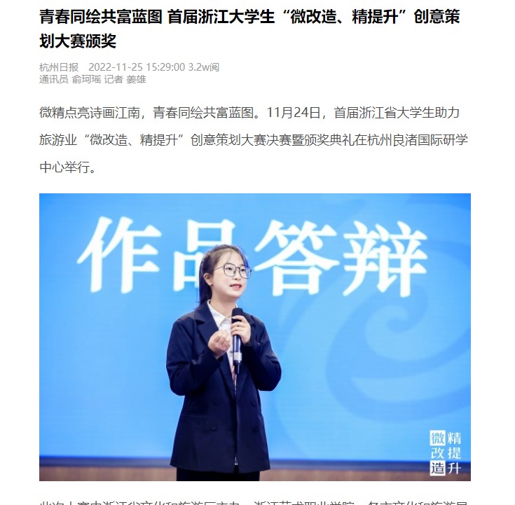 杭州日报:青春同绘共富蓝图 首届浙江大学生“微改造、精提升”创意策划大赛颁奖