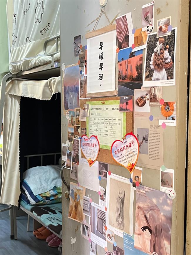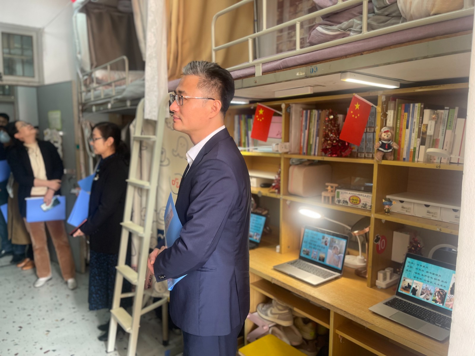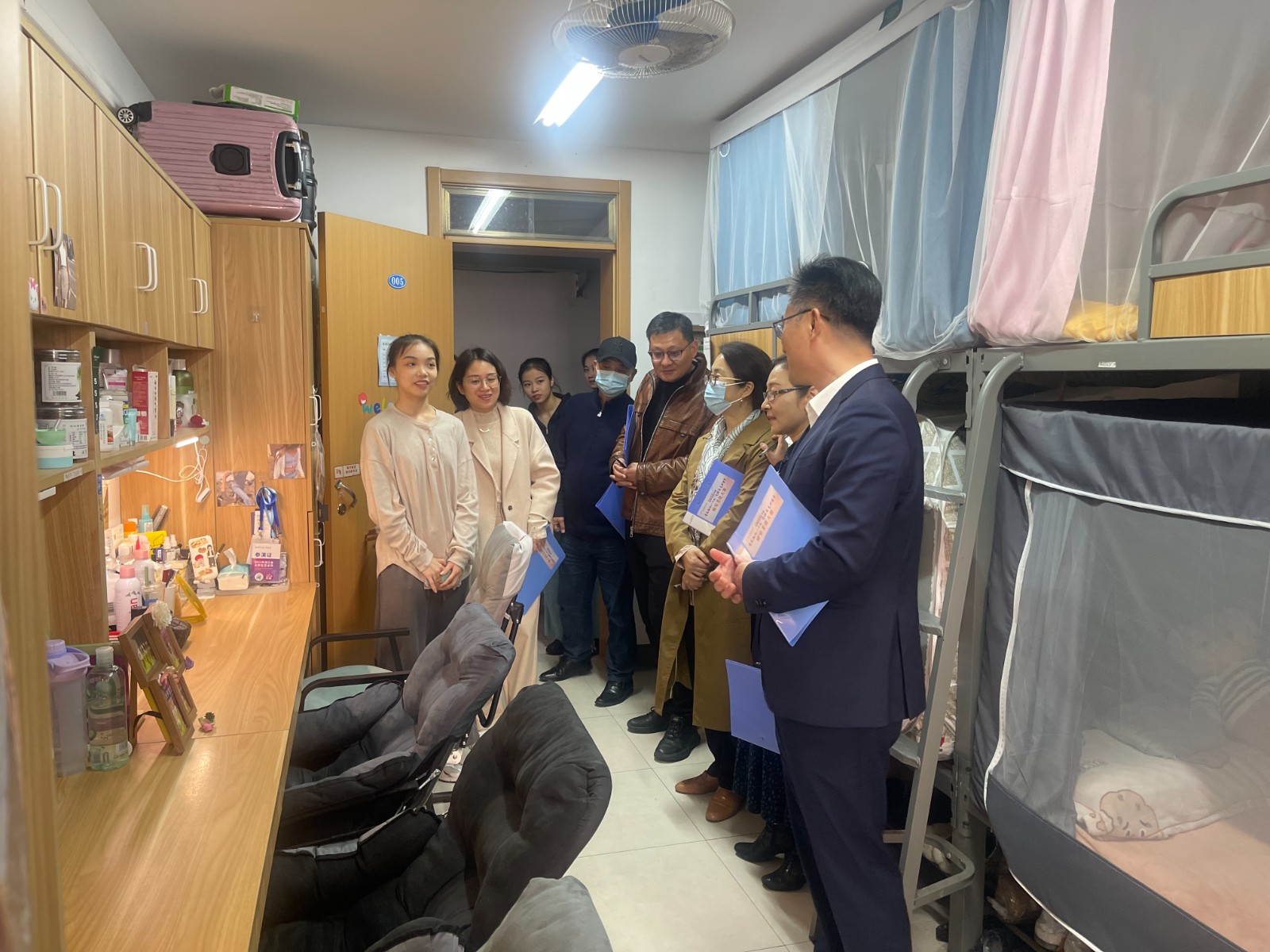 为庆祝党的二十大胜利召开,推进公寓文明建设,提升学生寝室内务卫生水平及文化内涵建设,增强青年学生劳动意识,鼓励学生从创设美丽舒适的生活环境做起,积极参加发现美、创造美的实践,我校特举办了“青春献礼二十大 定格最美新室界”寝室美化大赛活动。11月25日,校党委书记薛亮、院长黄杭娟、校党委班子成员及职能部门领导一同前往参赛的各寝室进行参观评比。