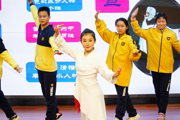 本次进校园活动的演出团队由2020级永嘉昆剧班学生组成,节目包括《林冲夜奔》片段 、牡丹亭《游园》片段、《孽海记·思凡》片段、《扈家庄》片段、《山门》身段表演、髯口身段表演、《孽海记·下山》片段和把子功“小快枪”表演、腿毯功展示等等,演出的节目穿插在由青年教师耿绿洁主讲的《国风送雅-昆曲表演艺术漫谈》讲座中,用昆曲折子戏片段及昆曲基础身段腿毯功展示来普及昆曲知识,给中小学师生们带来了别开生面又富有意义的“第二课堂”,丰富了他们的校园文化生活,让学生们近距离感受戏曲艺术所蕴含的中华文化之美。