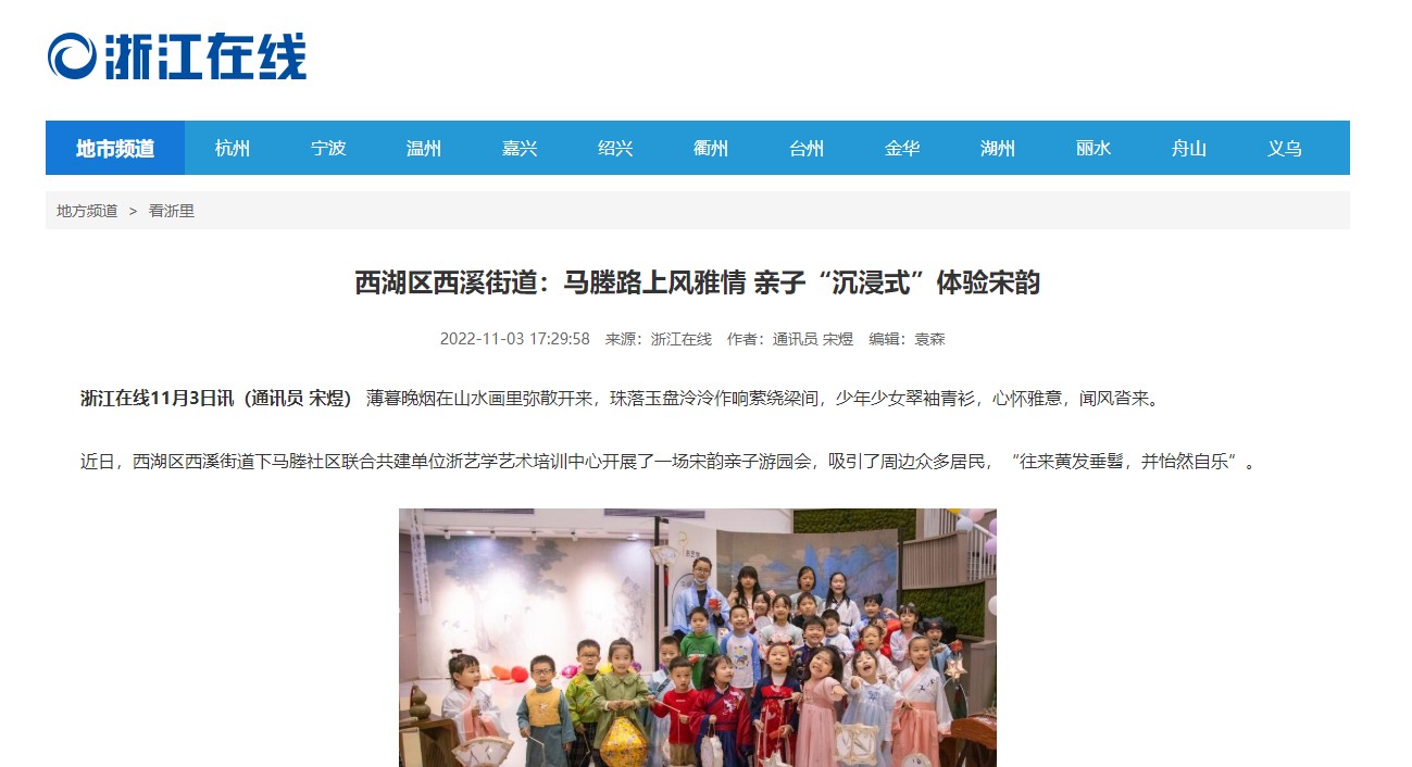 “通过视听觉沉浸式体验带领孩子们感受宋韵文化,让千年文化不再遥远,让宋韵流动起来、传承下去。”浙艺学宋煜老师表示,“接下来,我们还将联合社区继续筹划此类活动,让更多的孩子参与进来,享受传统文化的浸润,坚定文化自信。”