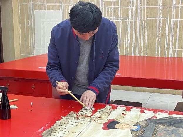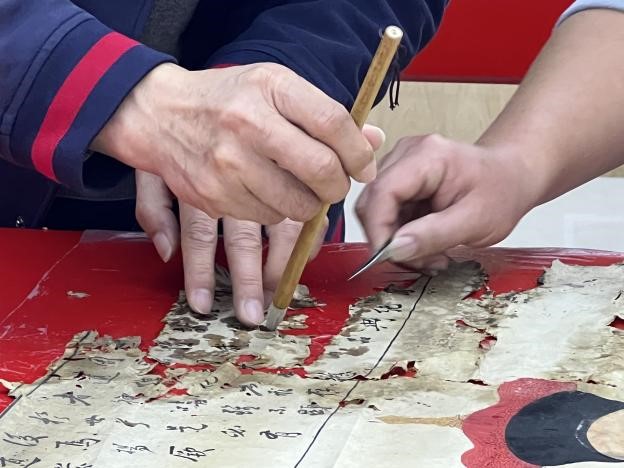 古字画修复技艺要求一丝一缕、一笔一片都要细致入微,刘德龙的理论实践教学促进了文物修复与保护学子高效高质的学习,在有限时间里近距离学习实践知识,进一步激发学习热情,增强了专业自豪感。
