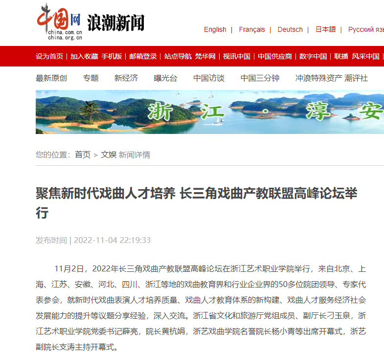 中国网浪潮新闻:聚焦新时代戏曲人才培养 长三角戏曲产教联盟高峰论坛举行
