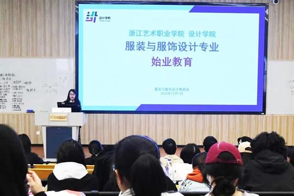 11月1日中午,服装与服饰设计专业在阶梯一教室举行始业教育,服装与服饰设计专业教研室主任巴蕾向同学们介绍了服装教研室的师资情况,服装与服饰设计专业带头人李雪芬介绍了服装专业培养目标、课程设置、教学条件、就业方向、教学实践成果等内容。服装与服饰设计的专业方向,主要分为舞台服装设计、女装设计与制作、女装设计与传播,其中舞台服饰设计是学校特色。新生班主任项敢倡导同学们在大学期间能够做到多思考,多做方案,多参考优秀案例,多请教老师。