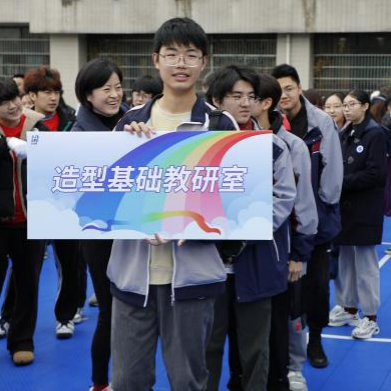 伴随着激昂的《运动员进行曲》,设计学院首届趣味运动会的开幕仪式以师生拔河比赛的形式启动。由设计学院舞台艺术设计与制作专业、服装与服饰设计专业、广告艺术设计专业、动漫设计专业、环境艺术设计专业、造型基础(附中)专业师生以及“七号舍友”代表组成的七支拔河队伍摩拳擦掌,各展风采,嘹亮地喊出属于他们的口号。
