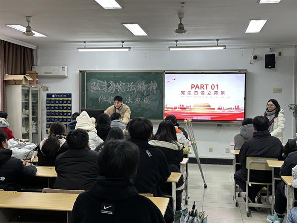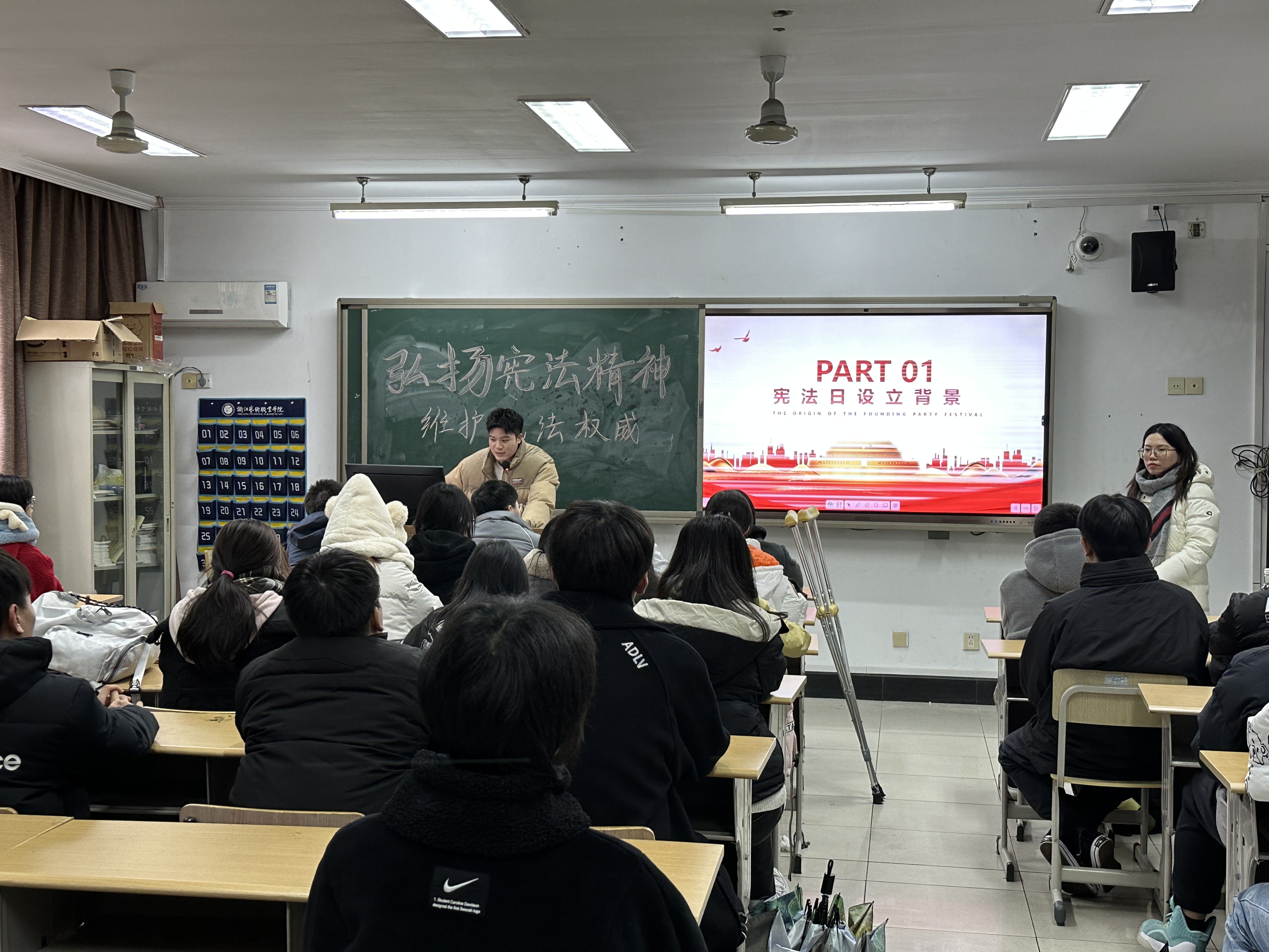 12月2日,在第九个国家宪法日来临之际,戏剧影视表演专业的学生在专任教师的带领下,开展“宪法晨读”活动,一字一句大声诵读宪法,学习宪法相关知识,用心体会宪法的庄严与神圣,体会宪法温度、感受宪法力量。