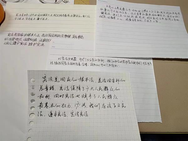 戏剧影视学院22级影视编导班、22级影视多媒体1班的学生,用文字表达新时代法治精神,记录“我与宪法的故事”。宪法与每个人的生产生活都息息相关,与每个人都有说不完的故事,戏影学子结合自身学习、生活经历,以手中之笔,谈对宪法的认知和体会,释法治精神。