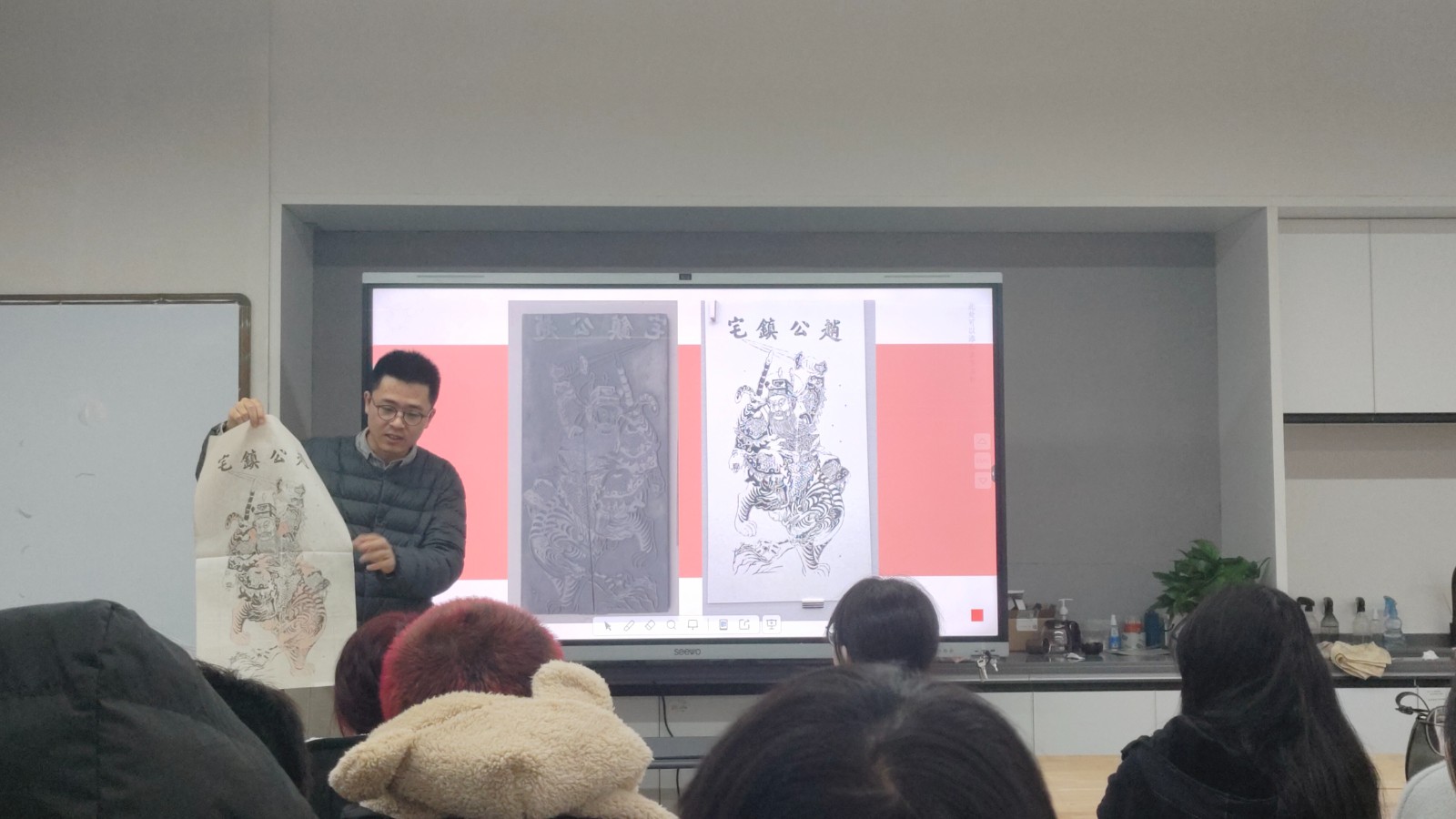此次木版年画讲座,同学们拓展了有关水印木刻的专业知识同时也开阔了艺术视野,提高了人文艺术修养。作为木版年画的传承人和见证者,如何让民俗得以传承,重点就在于创新和融合。民俗文化能与现代设计相结合,才是创新中的传承。本次讲座,为民族传统技艺以及其他美术类专业同学的学习添砖加瓦,也为民俗文化的传播拓宽新的道路。