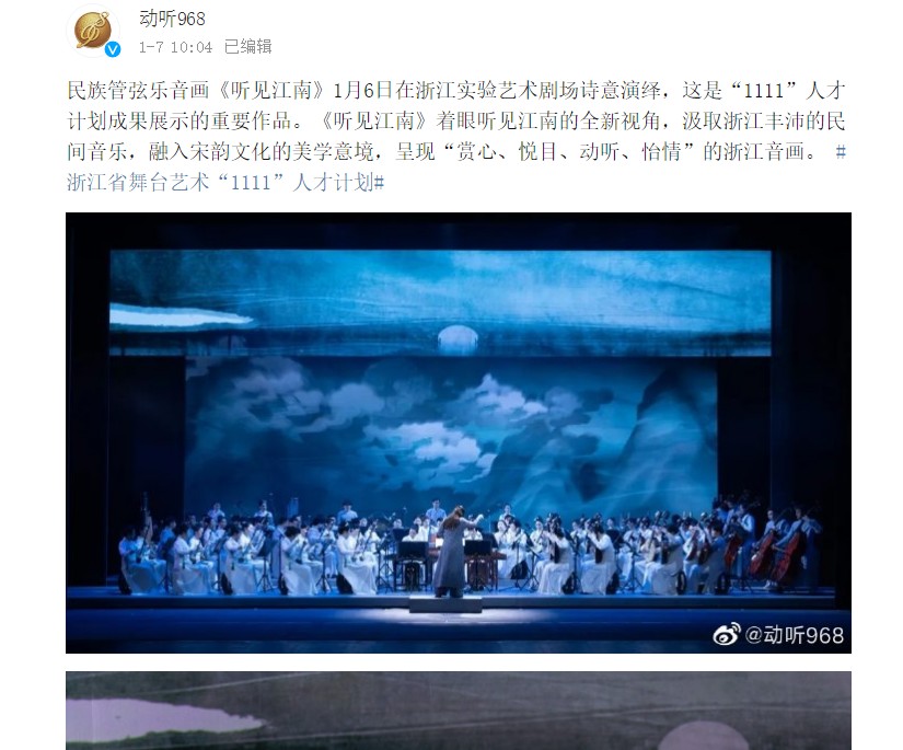 动听968微博:民族管弦乐音画《听见江南》1月6日在浙江实验艺术剧场诗意演绎