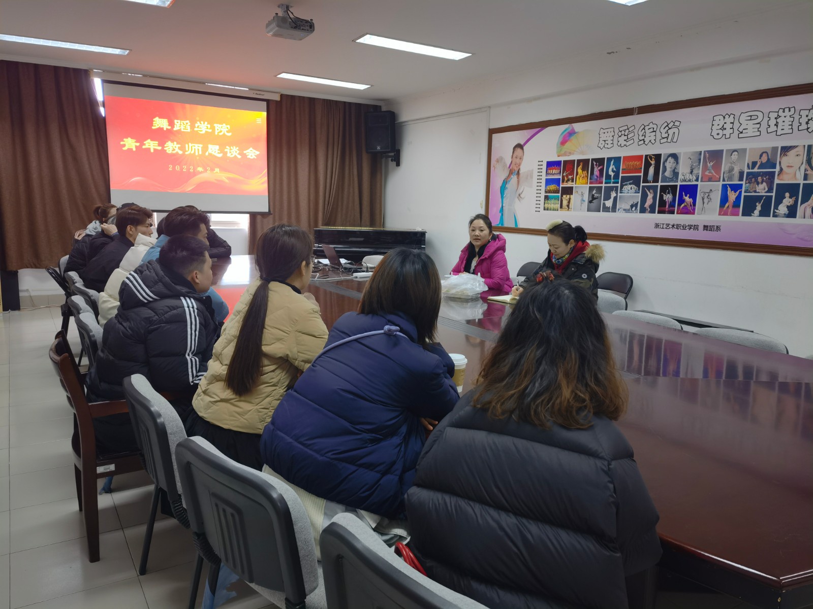 会后,青年教师们直言深切感受到舞蹈学院领导班子的关怀和集体的温暖,为今后的成长找准了方向和定位。在新的学期中大家将进一步坚定爱党、爱国、爱教、爱校、爱生的职业情感,自觉认真履行岗位职责,恪尽教师义务,践行师德师风规范,为学院的事业发展、为新时代文化浙江建设建功立业。
