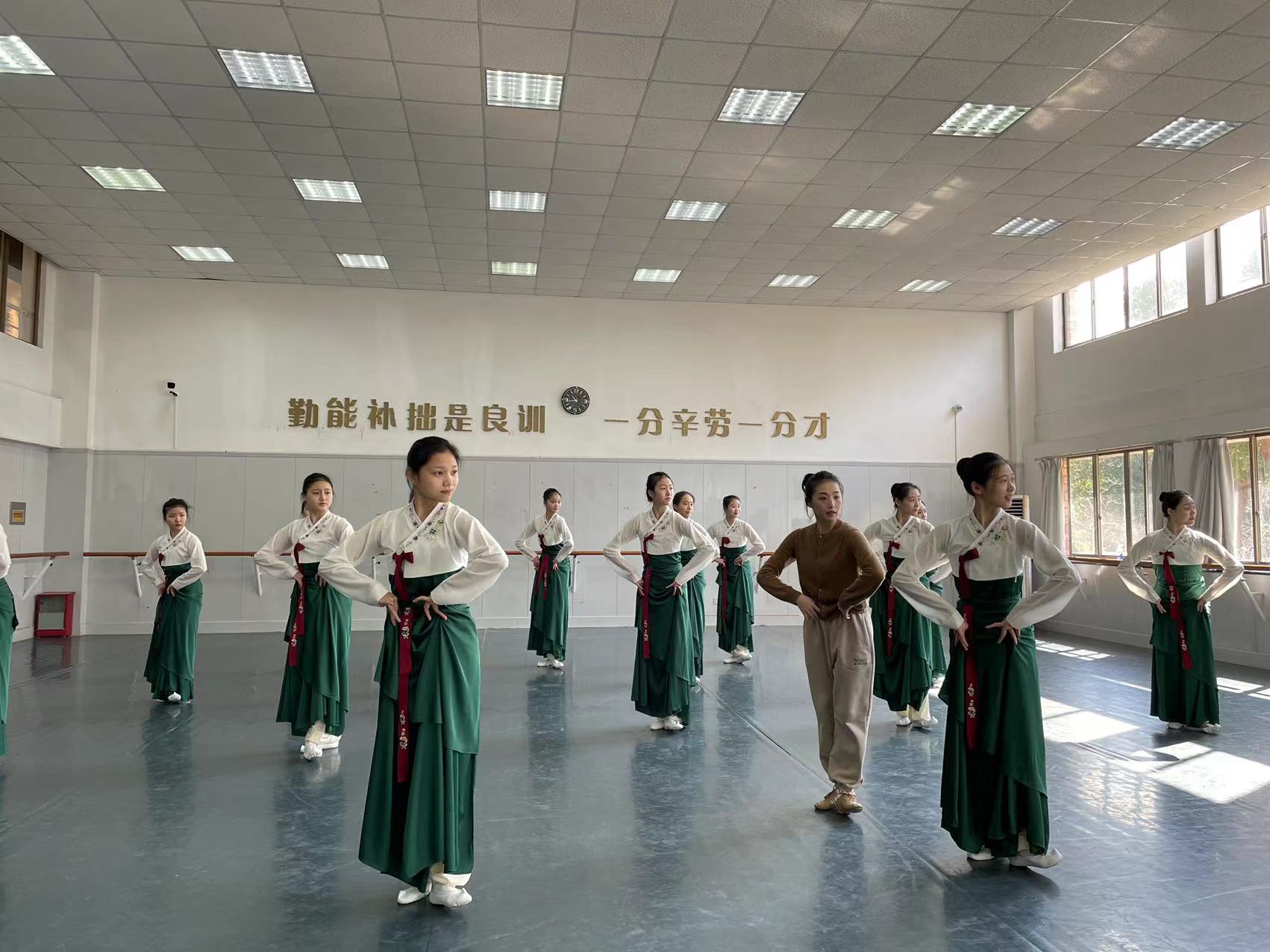 开学第一天教学检查是舞蹈学院日常教学质量保障建设的重要组成部分,对及时了解教学运行情况,保障教学工作有序开展具有重要意义。从教学检查情况看,前期教务员及办公室成员已经为新学期开学做了大量认真细致的准备工作,无论教室门口电子课表的使用,设施设备的安装调试,以及教室、走廊环境的整改,都得到有效的更新与保障。教学保障措施充分有力,教学秩序井然有序,教师精神饱满,授课准备充分、均能提前到岗,课堂氛围效果良好;学生出勤率百分百,服装道具等准备妥当,上课积极认真。