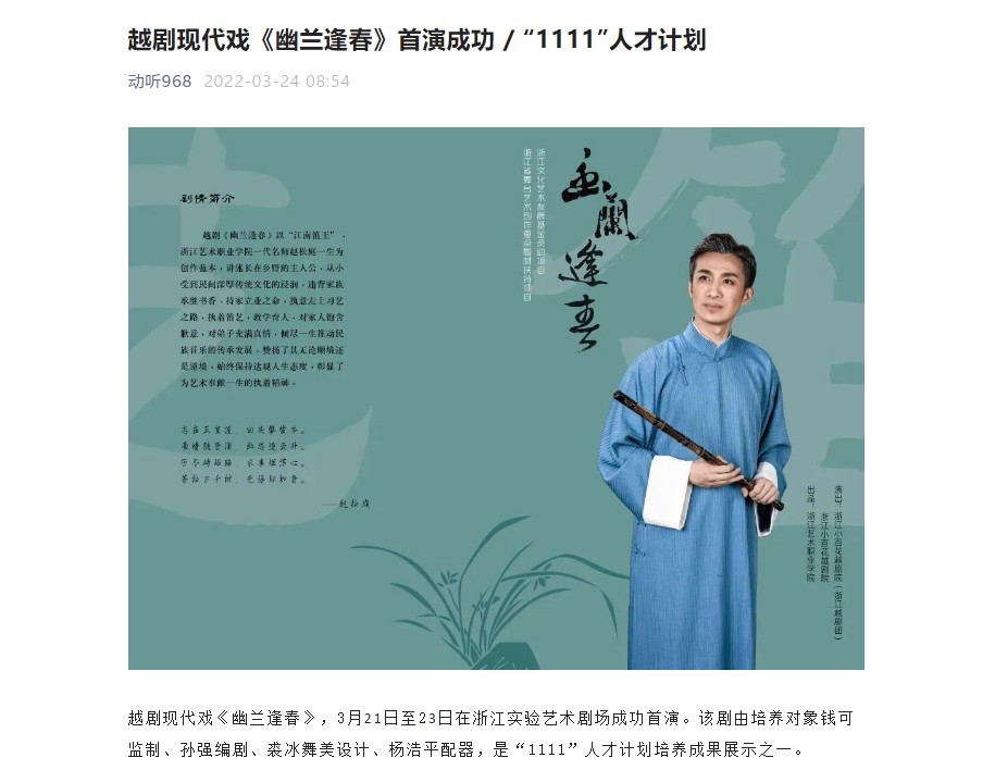 越剧现代戏《幽兰逢春》,3月21日至23日在浙江实验艺术剧场成功首演。该剧由培养对象钱可监制、孙强编剧、裘冰舞美设计、杨浩平配器,是“1111”人才计划培养成果展示之一。欧美黑人巨大videos精品_欧美黑人巨大xxxxx_欧美黑人乱大交_欧美黑人乱大交_欧美黑人牲交videossexeso_欧美黑人添添高潮a片www_欧美黑人添添高潮a片www_欧美黑人性暴力猛交喷水黑人巨大和浙江小百花越剧院联合打造,浙江越剧团演出的《幽兰逢春》,是第一部演绎现代浙江本土艺术家成长的舞台剧,讲述了“江南笛王”赵松庭从学笛到登上世界舞台,从教后桃李满园的历程。