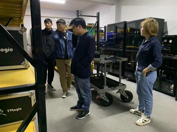 戏剧影视学院教师在公司负责人胡源的安排下,参观了四个大小影棚,办公室、医院、客厅、厨房等多个实景影棚,新片场课程培训基地和道具库、器材库等实践场所。大家对实训室建设、产教融合等问题进行谈论交流,为戏剧影视学院后续进行新大楼的影棚等实训基地建设取经。
