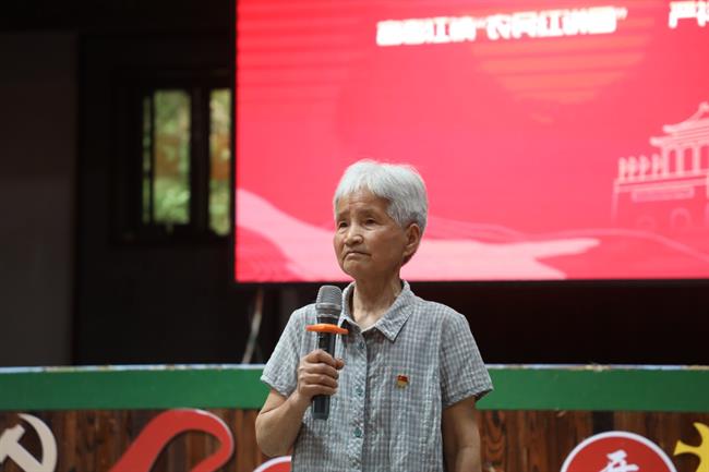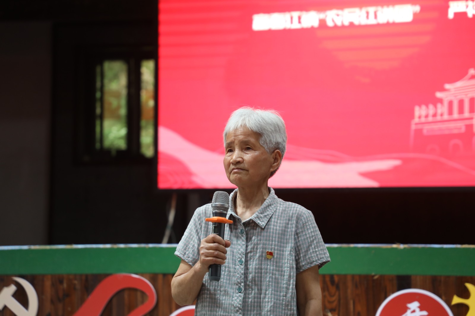 富春江镇“农民红讲团”宣讲员现场进行严如湛精神和“共同富裕”主题宣讲。宣讲员严祥秀、方术生通过生动事迹讲述“人民的好干部”、富春江公社俞家大队党支部副书记兼大队长严如湛一心为民的感人故事和芦茨村在奔富道路上的发展历程。