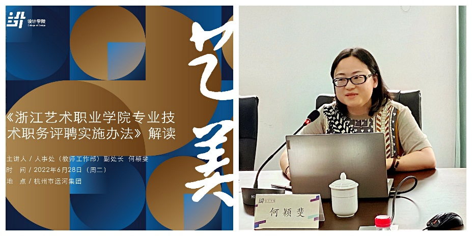 黄杭娟向设计学院全体教职工开展深入学习贯彻落实省第十五次党代会精神专题宣讲。她围绕“高举习近平新时代中国特色社会主义思想伟大旗帜,忠实践行‘八八战略’、坚决做到‘两个维护’,在高质量发展中奋力推进中国特色社会主义共同富裕先行和省域现代化先行”主题,与设计学院全体教职工进行交流。她表示,省第十五次党代会是在迎接党的二十大的关键节点召开的一次具有政治意义的大会,是在迈入共同富裕和现代化新征程的关键节点召开的一次具有标志性意义的大会,是在百年变局和世纪疫情交织叠加的关键时期召开的一次具有战略意义的大会,取得了丰硕成果。她指出,省党代会释放的诸多信号与学校发展密切相关,要紧密结合时代发展特色和浙江发展实践;要深刻领会过去五年浙江取得的历史性成就、“两个先行”总目标、“八个高地”具体目标、“五大工作导向”价值追求和“十个着力”主要任务;要扎实推进“双高”建设,发挥学校在以文化人、以文育人方面的特色优势,更好地担负起新时代赋予的历史重任,为我省创新发展战略作出新贡献。