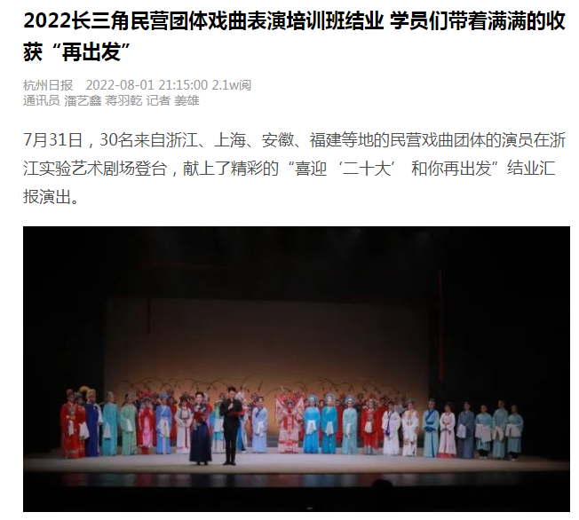 杭州日报:2022长三角民营团体戏曲表演培训班结业 学员们带着满满的收获“再出发”