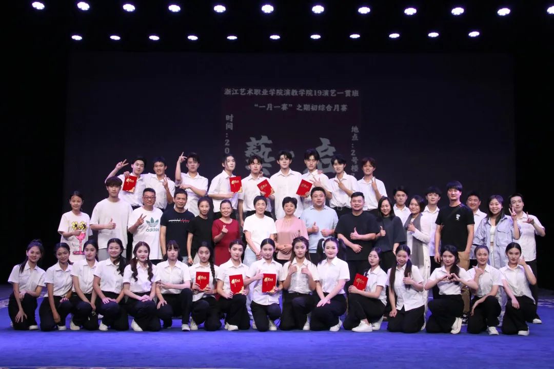 月赛结束后,老师进行点评,王津津说,这个班级给我带来了惊喜。同学们很全面,能唱能跳能说能演,每一个人都有着自己的特点特长。周旭亮说:“19演艺一贯班的同学们舞台上很积极,希望在未来毕业大戏上看到你们更多精彩的表演。”