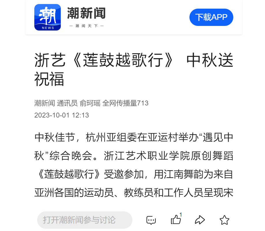潮新闻:浙艺《莲鼓越歌行》 中秋送祝福