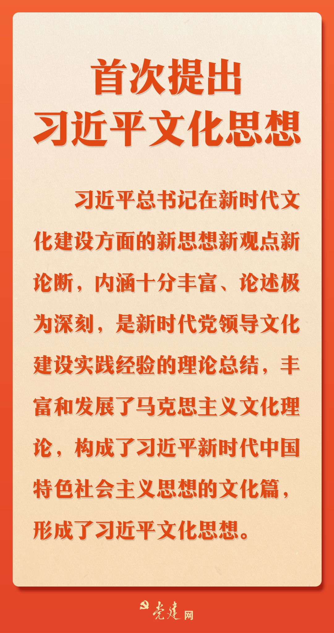 会议强调,习近平文化思想内涵十分丰富、论述极为深刻,既有文化理论观点上的创新和突破,又有文化工作布局上的部署要求,明体达用、体用贯通,明确了新时代文化建设的路线图和任务书,是新时代党领导文化建设实践经验的理论总结,丰富和发展了马克思主义文化理论,标志着我们党对中国特色社会主义文化建设规律的认识达到了新高度,表明我们党的历史自信、文化自信达到了新高度,并在我国社会主义文化建设中展现出了强大伟力,为做好新时代新征程宣传思想文化工作、担负起新的文化使命提供了强大思想武器和科学行动指南。