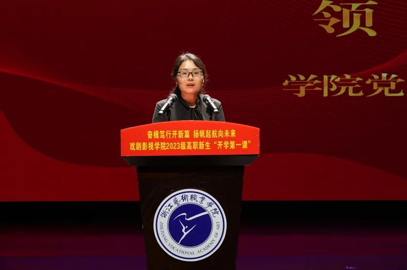 许瑛向全体新生的到来表示热烈的欢迎,并介绍了戏剧影视学院的基本情况。她向新生们提出三点希望:一是志存高远,厚植家国之情;二是自强不息,勇攀高峰之行;三是明理尚进,常存感恩之心。她期望同学们能让韶华在“求真尚美”中积淀,让梦想在“精艺修为”中升华,成长为具备健全人格、宽厚基础、创新思维和社会责任感的浙艺戏影人。
