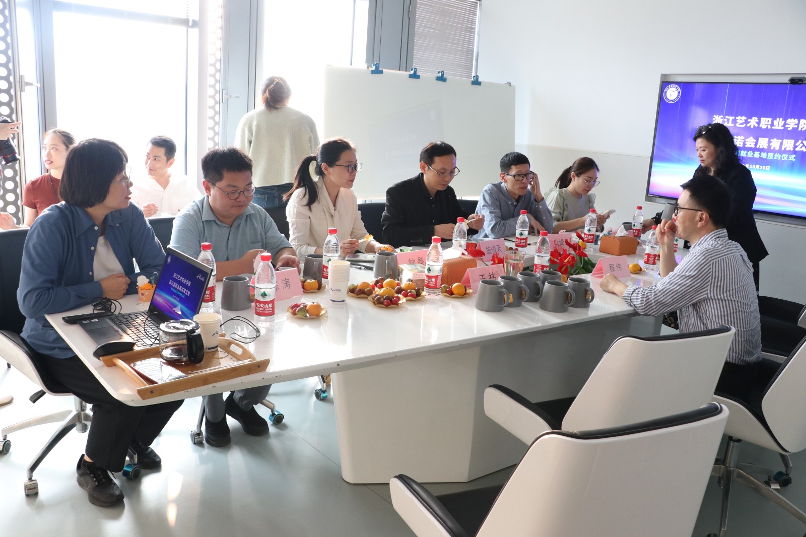 施俊天表示,学校将打造教、学、用有机统一的课程体系,深化贯通培养制度改革,推动专业设置、培养目标、培养方案与企业用人需求相衔接,搭建高职学生成长就业的“立交桥”,培育产教融合全面发展的“排头兵”。在教育部关于专业重点改革的指导下,手工艺学院的展示艺术设计专业改革方向明晰,成效显著,希望未来能够继续深化校企合作,在满足企业岗位需要和用人需求的同时,让学生拥有更多的实践学习机会,与浙江嘉诺会展有限公司建立产教融合基地,共同打造与专业方向相契合的合作交流平台。