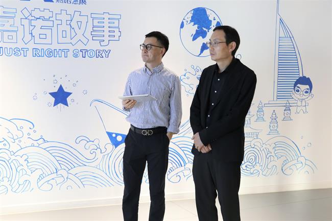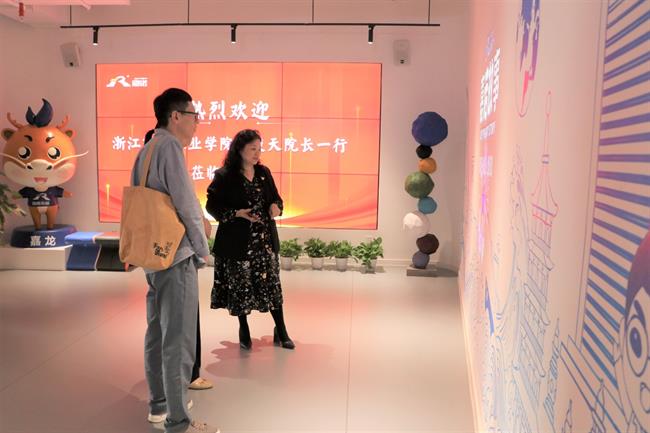 嘉诺创始人兼CEO程伟、合伙人党支部书记王祎带领施俊天一行参观了公司的整体布局、业务区块,并向在场的各位介绍了公司的成长经历和未来发展规划。同时,施俊天一行看望并问候了在公司任职的手工艺学院20级毕业生左彤彤,与她进行亲切的交谈,希望她能将在浙艺所学的知识充分发挥到工作岗位上,成为一名独当一面的设计师,为接下来的校企合作项目发挥桥梁作用。