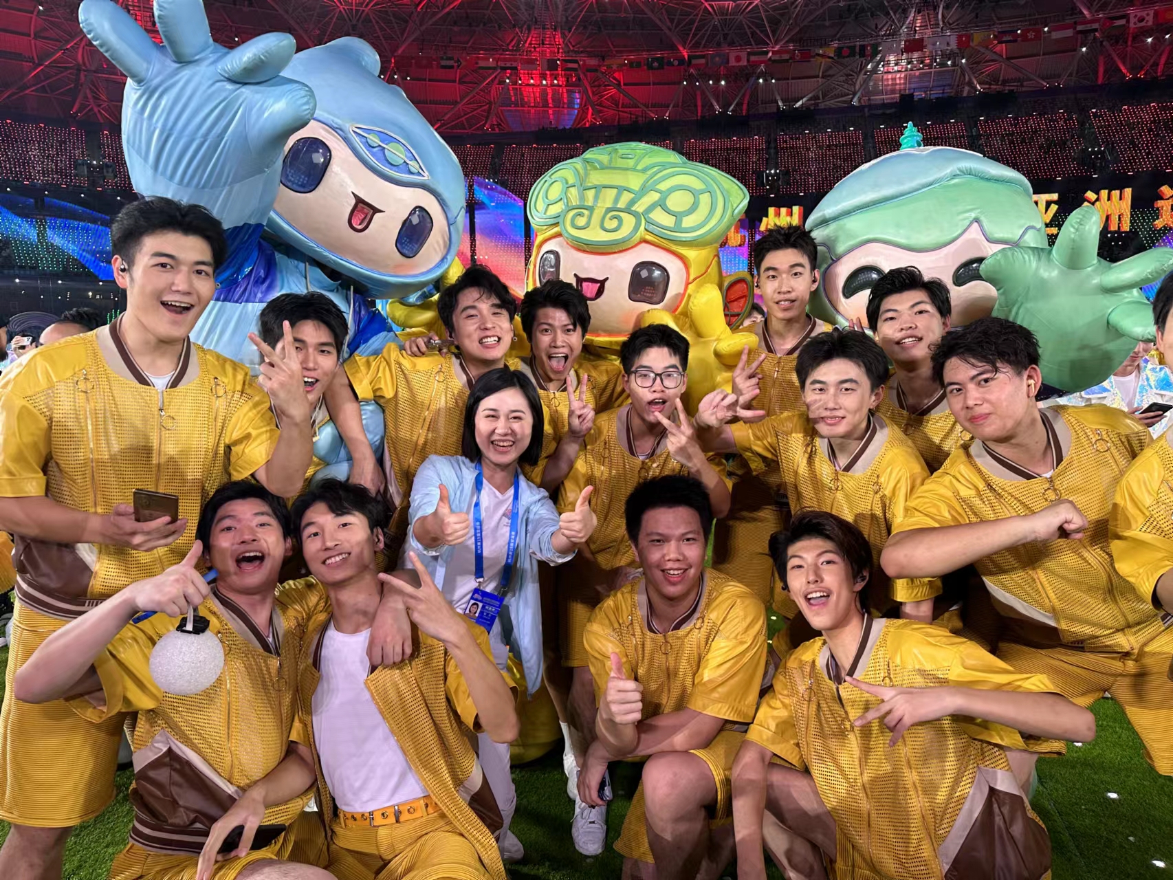 “很荣幸在亚运会闭幕式上被选为了Asia车台的小a领唱。在被选为领唱的那一刻,我明白要更严格要求自己,既要学歌背词又要加强表现力和表情管理。领唱看似很简单,可站在上面一刻都不能松懈。这次经历很难忘,很感激学校给予机会,让我们参与如此重大的演出。”汪施琦告诉记者。