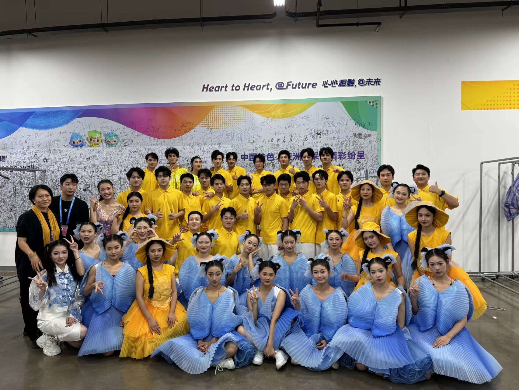 据带队老师曾乐介绍:“‘青春迎宾者’团队34人,来自戏剧影视学院、音乐学院、演艺与教育学院的七个班级,大家从一开始的互相不认识,到最后相濡以沫,共同奋斗,好像成为了一个班级一样,作为领队老师,看到大家的变化真的很感动,这个临时集体的每一个人都把对方当成同伴,相互照顾。对接工作人员称赞浙艺是很团结又充满正能量的集体。”
