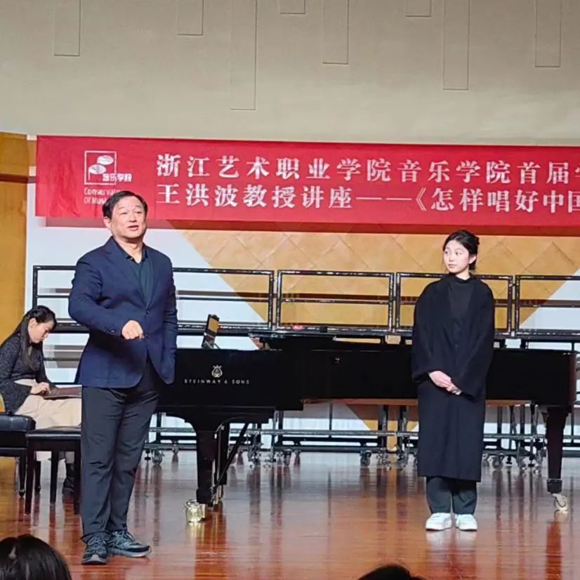 下午两点,中国音乐学院博士生导师,著名男高音歌唱家王洪波教授应邀举办了“怎样唱好中国声乐作品”的教学讲座。他为来自音乐学院附中及高职高专的声乐专业学生进行了示范教学。他提出,声乐演唱要做到将死的音符音变为活曲,化“僵谱”为“妙乐”的创造性转化的再创作升华,尤其是民族唱法,因作品具有鲜明的民族性和地域性,必须要充分调动并合理运用音色、旋律、力度、顿挫、节奏、语音等技艺手段,遵循艺术内在的规律对歌曲进行各种有效的润泽、修饰、着色和美化,使之成为人物生动、形象逼真、感情饱满、意境深远、风味醇正、气韵超拔、美善统一的艺术臻品。王洪波的讲座使师生们受益匪浅,开拓了师生们声乐学习的视野。