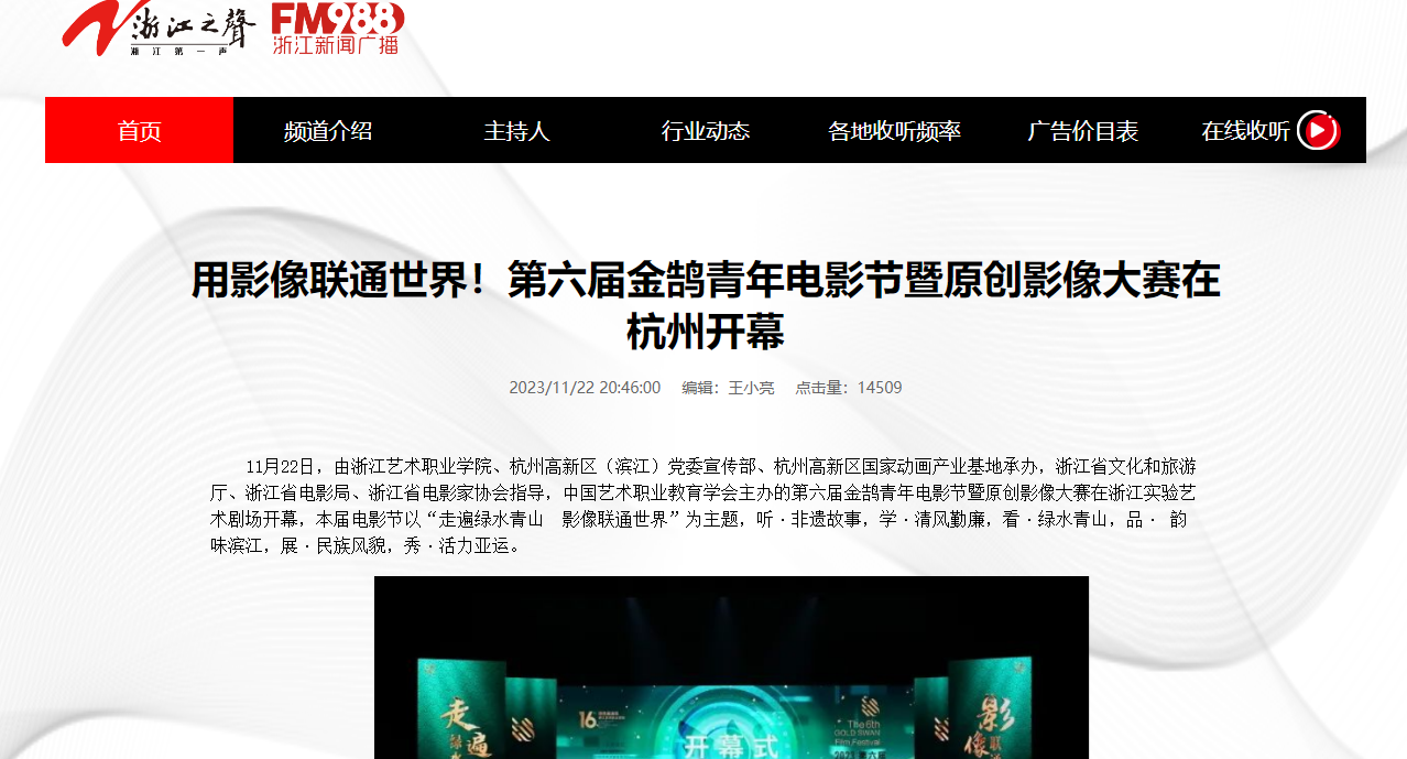 浙江之声:用影像联通世界!第六届金鹄青年电影节暨原创影像大赛在杭州开幕