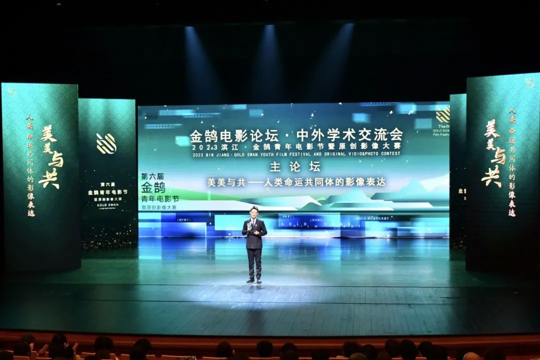 11月23日上午,第六届金鹄青年电影节暨原创影像大赛中外学术交流会主论坛于浙江实验艺术剧场举行。六位嘉宾围绕“美美与共——人类命运共同体的影像表达”主题作精彩发言。主论坛由中央戏剧学院教授、博导、影视策划人、国家电影审查委员会委员路海波主持。