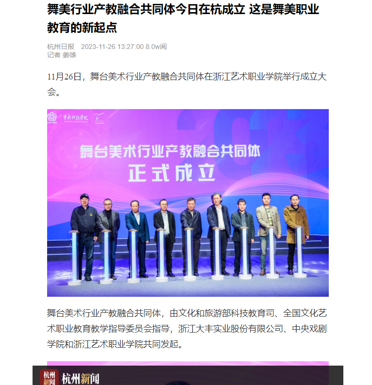 杭州日报:舞美行业产教融合共同体今日在杭成立 这是舞美职业教育的新起点
