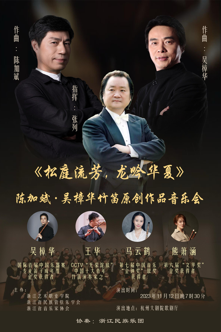2024年恰逢赵松庭先生诞辰100周年,让本场音乐会在过往一系列纪念音乐会的基础上,更多了一层深厚的寓意。李白在《宫中行乐词八首》中写到:“笛奏龙吟水,箫鸣凤下空”,将笛声喻为龙吟,而“华夏”则象征着中华民族上下五千年的灿烂文化,“龙吟华夏”代表着浙派笛乐誉满全国、走向世界的美好祈愿。