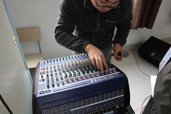12月16日上午10:00开始进行调音台的实操考试,每位考生需要在规定的时间内,根据考题将调音台的系统连接好,并且完成调音试音的过程,最后由考官老师“一对一”进行打分。