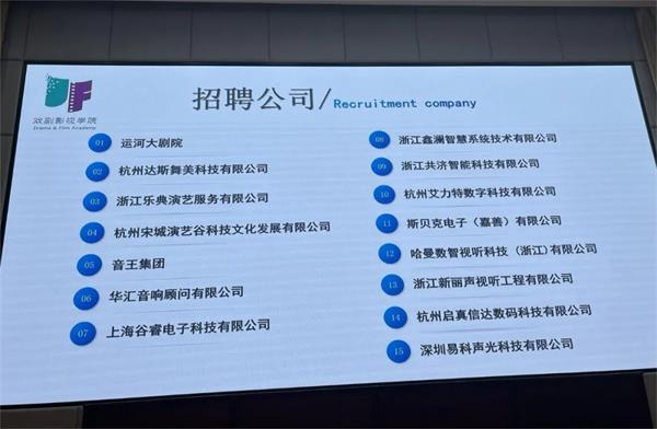 为促进2024届毕业生就业,提升学生的就业意识和就业能力,实现平台共享、资源共聚,12月6日下午,戏剧影视学院音像技术专业专场招聘会在图信报告厅举办。本次招聘会由音像技术专业带头人、青年教师科研团队——音像技术专业技术技能研究创新团队负责人王芳组织开展,共有浙江演艺集团剧院经营管理有限公司、杭州宋城演艺谷科技文化发展有限公司、华汇音响顾问有限公司、音王集团、杭州达斯舞美科技有限公司等15家企业参与招聘。招聘会由学院学工主管颉顺虎主持。