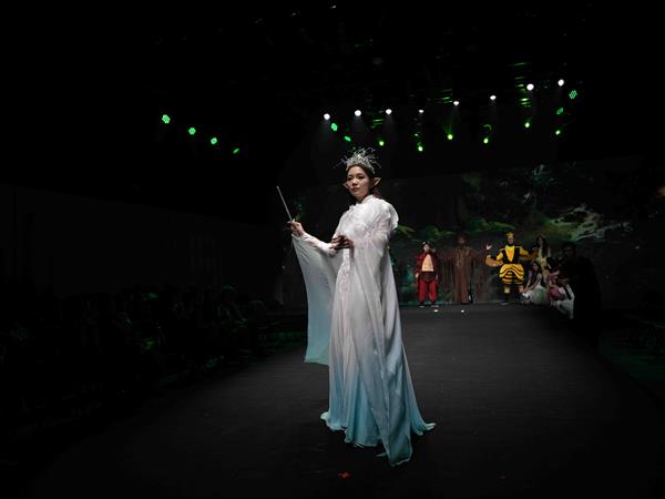 2020级服装与服饰设计班以设计学院毕业综合展演“传融”为大背景,用服装秀的形式展示毕业作品的成果。服装作品以传统文化、戏曲戏剧服饰和现代时装的结合为出发点,运用多样化的裁剪和大胆的色彩搭配将时尚前沿与民族文化元素巧妙融合,将作品的观赏性、创意性、表现性融为一体,此外展演中还增加了当下时尚的全新元素——时尚宣传大片结合动态走秀、服装style3D虚拟模特展示技术、舞台剧目的表演等,创造出了震撼的视觉效果。