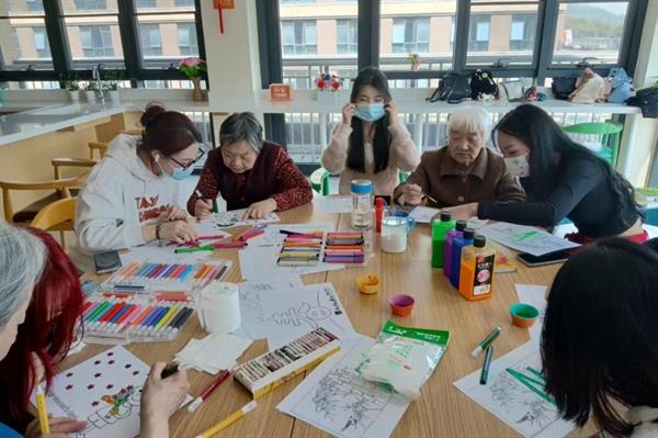 3月11日,设计学院志愿者团队走进滨江绿康养老院开展志愿服务活动,弘扬中华优秀传统文化,培养大学生敬老、尊老、爱老、助老的传统美德,陪同老人种花草、线稿上涂鸦、捏粘土做手工,一起度过一个难忘的周末。