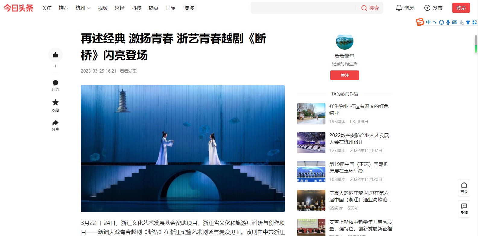 今日头条:再述经典 激扬青春 浙艺青春越剧《断桥》闪亮登场