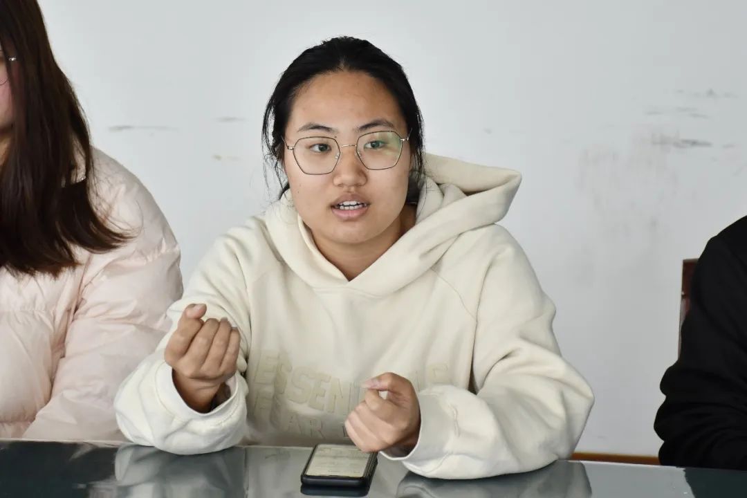 许瑛表示,学院将尽快反馈并落实同学们的问题,日后积极搭建师生沟通交流的平台,希望同学们能主动与班主任、辅导员诉心声、抛困惑、说想法,共同构建舒心、安心、顺心的校园生活。