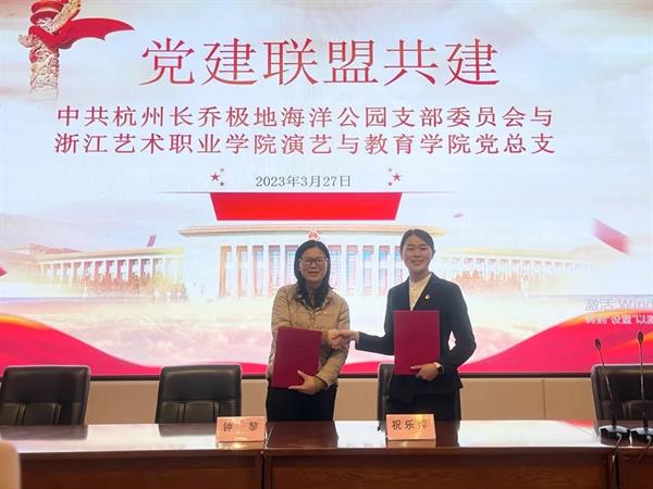 为进一步深化文旅融合,拓宽演教学院各专业服务旅游产业发展的渠道,3月27日,演教学院党总支与杭州长乔极地海洋公园支部委员会签订党建联盟共建协议并举办宣讲会,21级全体学生参会。