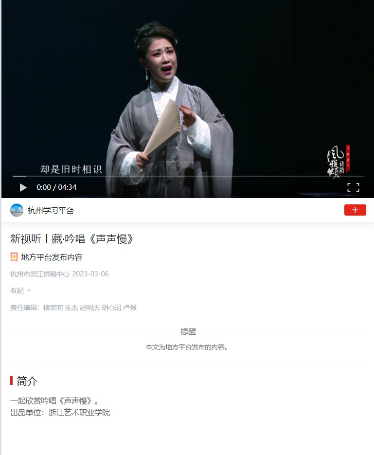 学习强国杭州平台:新视听丨藏·吟唱《声声慢》