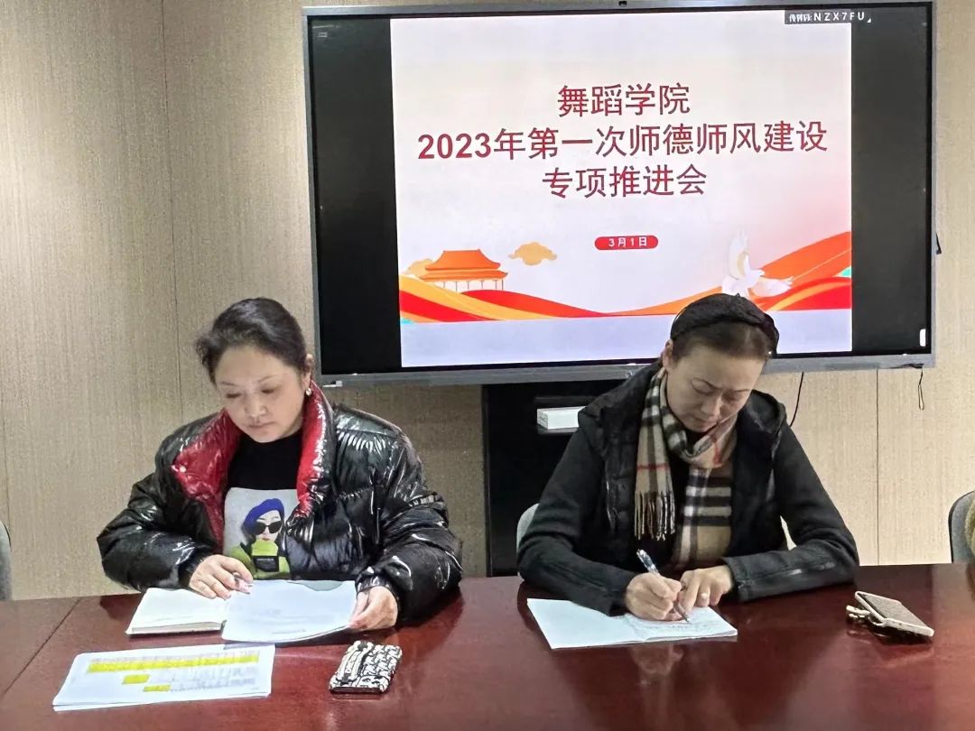 为深入贯彻落实习近平总书记关于教育的重要论述和全国教育工作大会精神,扎实推进《中共中央国务院关于全面深化新时代教师队伍建设改革的意见》《关于加强和改进新时代师德师风建设的意见》实施,舞蹈学院组织召开了2023年第一次师德师风建设专项推进会。