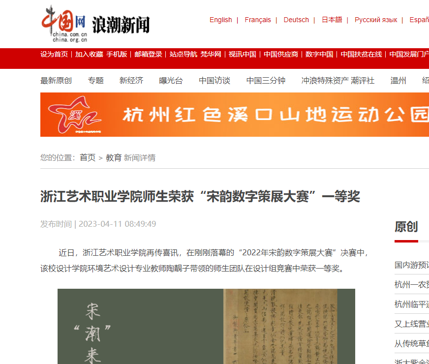 “2022年宋韵数字策展大赛”由浙江省文物局指导,浙江省博物馆、中国丝绸博物馆、浙江大学艺术与考古学院主办,浙江省博物馆学会协办。设计学院环境艺术设计专业组织教师带领环艺大三、大二学生组成多个团队参赛。