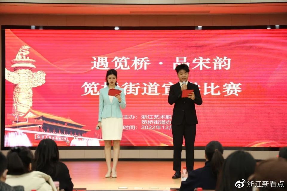 当晚,由浙艺学生与笕桥飞扬舞蹈队、东港水墨兰亭模特队倾力合作的文艺演出精彩纷呈。歌曲《我和南宋有个约会》让观众沉浸式体验宋人的风雅趣味;舞蹈《桃花晚月》与歌曲《月满西楼》串搭,让观众感受月长圆人长久的幸福美满生活;舞蹈串烧《宋引时韵》以国风音乐、服饰搭配现代舞元素,传递出宋韵文化的时尚性与多元化。原创音乐快板《放歌新笕桥》节奏轻快,情绪洋溢,引领大家领略笕桥现在、畅想笕桥未来。晚会在全场大合唱《遇“笕”》的歌声中进入尾声,预示着文化底蕴丰厚的笕桥,在时代的发展更迭中始终以昂扬奋斗之姿勇立潮头。晚会现场还表彰了本次文化节中涌现出的一批优秀代表,包括文化节宣讲比赛、摄影比赛的获奖人员、笕桥街道最美社区工作者、十佳文化志愿者等。