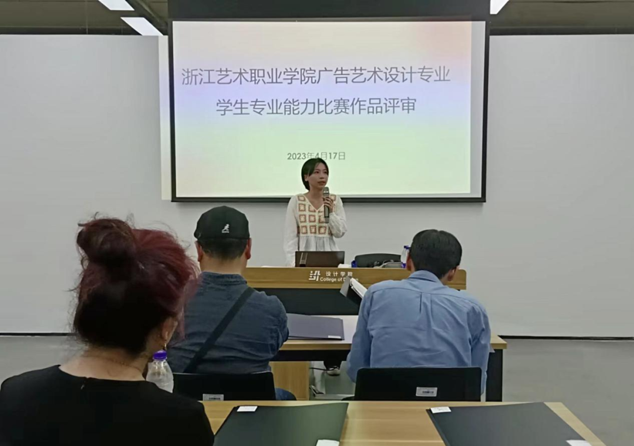 4月17日,针对此次学生专业能力比赛开展了参赛作品评审会。中国美术学院视觉传达专业教授毛德宝,手工艺学院副院长叶峰泉,设计学院副院长何佳玮及全体专业教师参加了本次活动。