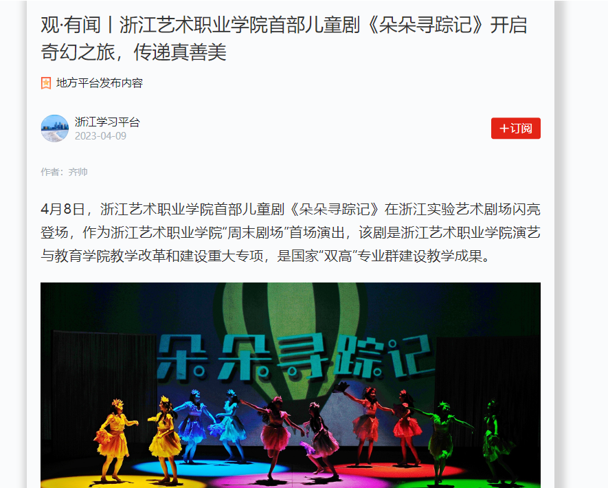 演艺与教育学院副院长、艺术总监荆芳表示,这部儿童剧作为学校双高建设的教学成果,项目从策划、实施都基于对演艺与教育学院表演艺术专业不同学制、不同学源、不同学段人才培养的多元化、多态化、多模化的深度教学探索。目前儿童剧市场非常火爆,是文化市场一个巨大的潜力股,此次演出以儿童剧演员专业能力培养为导向,拓宽学生就业岗位,培养学生一专多能可持续发展能力的实践。后续还将持续创作推出儿童剧系列作品,尝试对接儿童剧市场,深化产教融合,完善表演艺术专业人才培养体系。