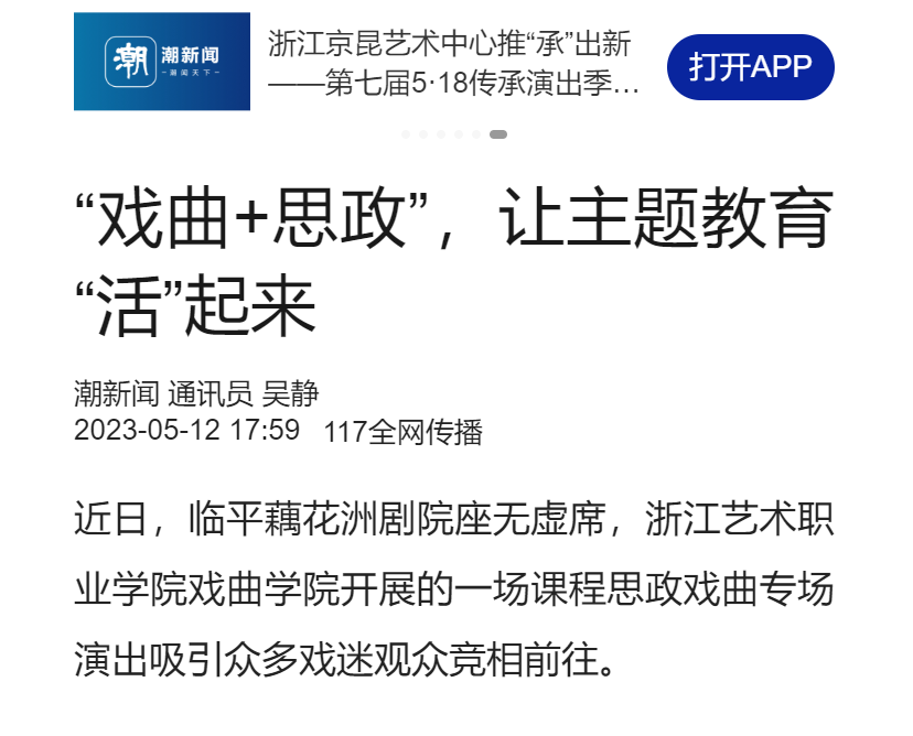 潮新闻:“戏曲+思政”,让主题教育“活”起来